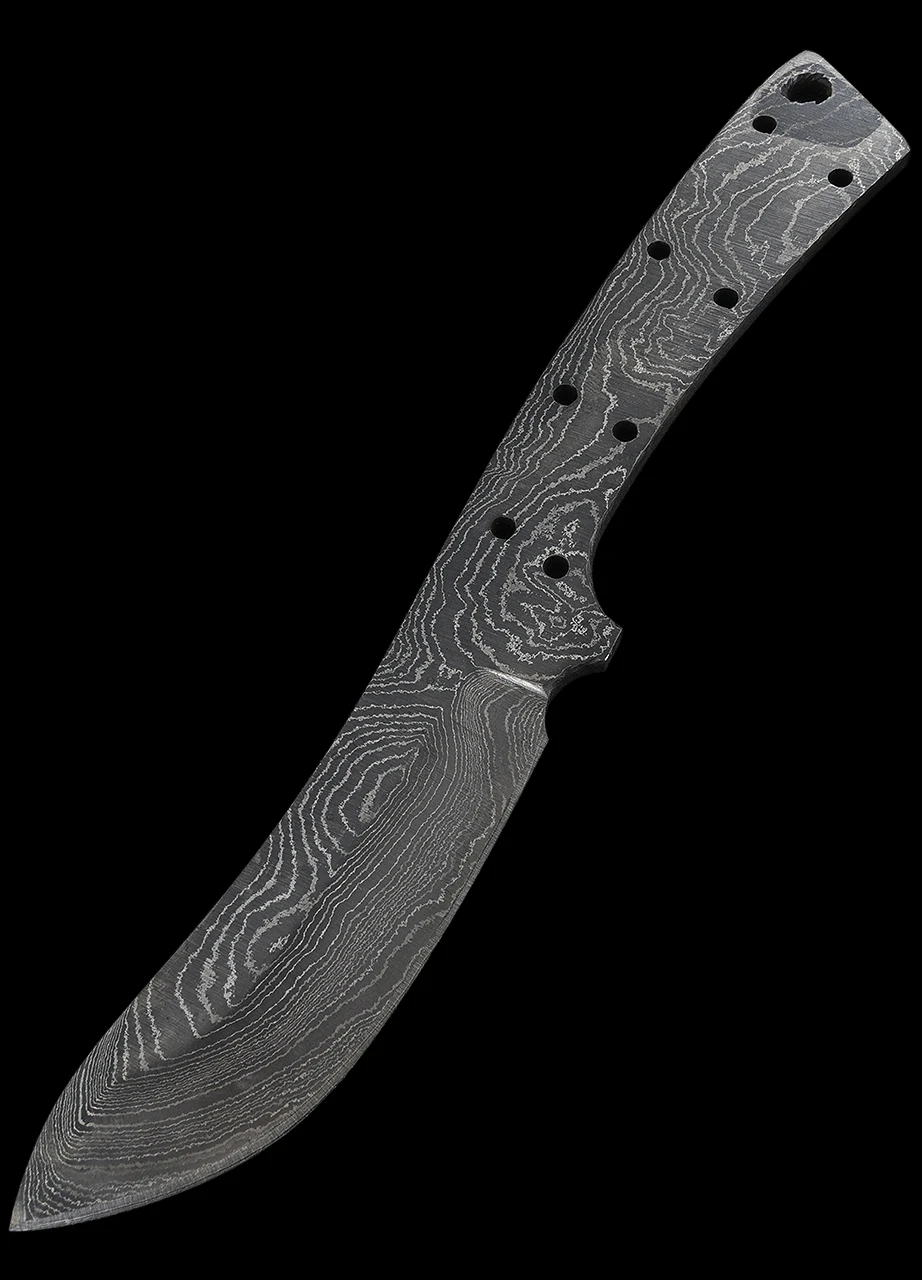 If you ever fancied making your own knife but don’t have a forge in the kitchen then now is your chance! These blade blanks have done all the hard work and are ready for blade scales of your choice to be attached. This version is stunning Damascus steel in a skinner shape.
