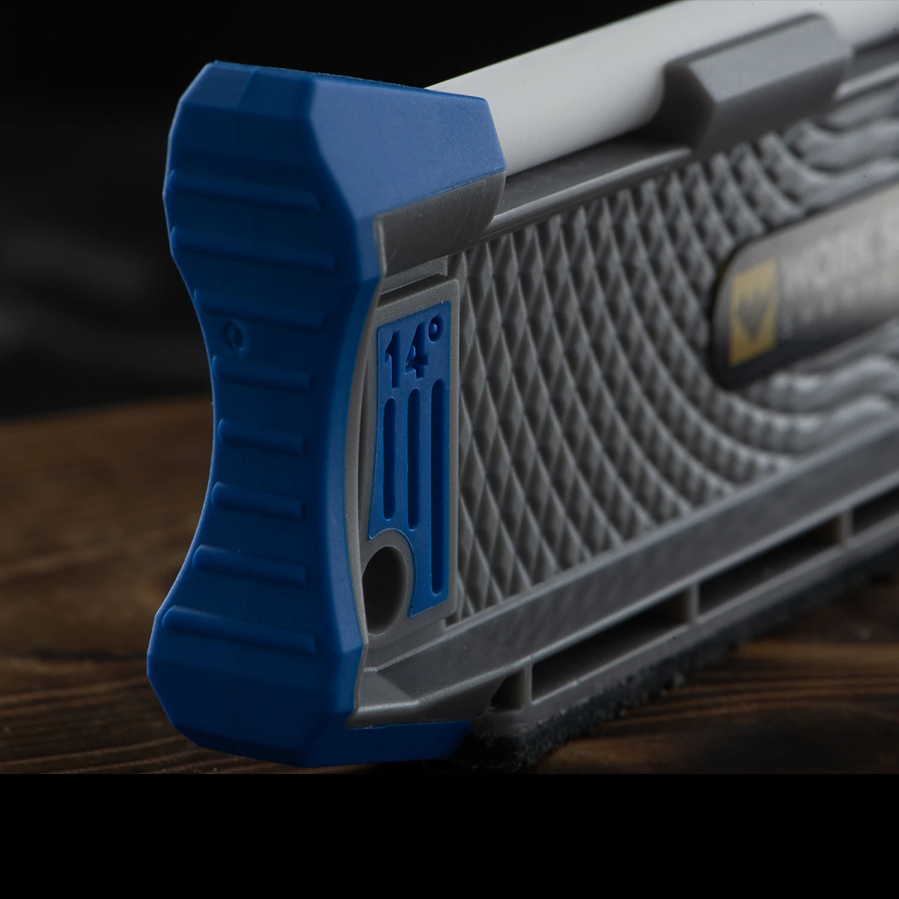 The Benchmade 14° Guided Hone Tool designed specifically for SelectEdge. It has a controlled 14 degree angle featuring a ceramic rod and leather strop to keep your edge sharp. Perfect for a clean, smooth razor sharp blade.