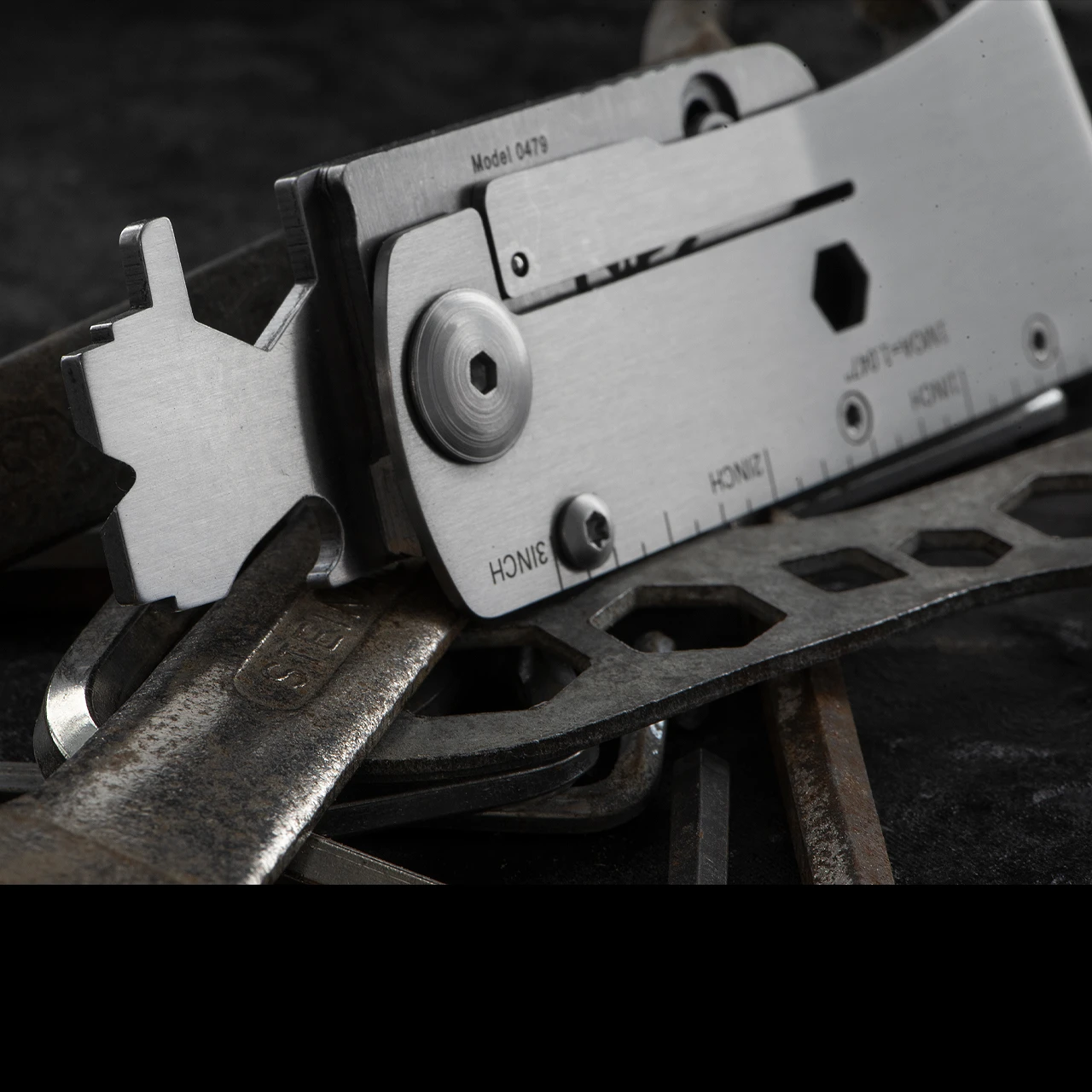 Features a utility knife with replaceable blades, five insert bits, 12/20 tube wrench. Nylon belt sheath included.