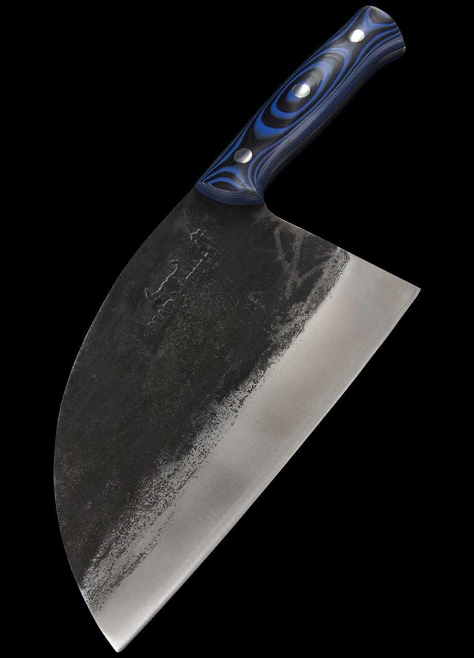 It’s a powerful cleaver with a razor-sharp (it really is unbelievably sharp) blade and convex profile shape.