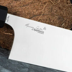 The K09 Mini Paring Knife’s 2.25-inch blade has a straight cutting edge and a sharp point that provide extreme control during detailed cutting tasks. These qualities make it the tool of choice for paring, carving decorative garnishes, and other food preparation chores that require precise control. Like the original version, it features a PlainEdge MBS-26 stainless steel blade, ground exceptionally thin and meticulously heat treated for optimal cutting performance. Its durable black polypropylene plastic handle is injection molded directly onto the tang of the blade and features a distinctive “stepped” texture pattern that offers both comfort and control during use.